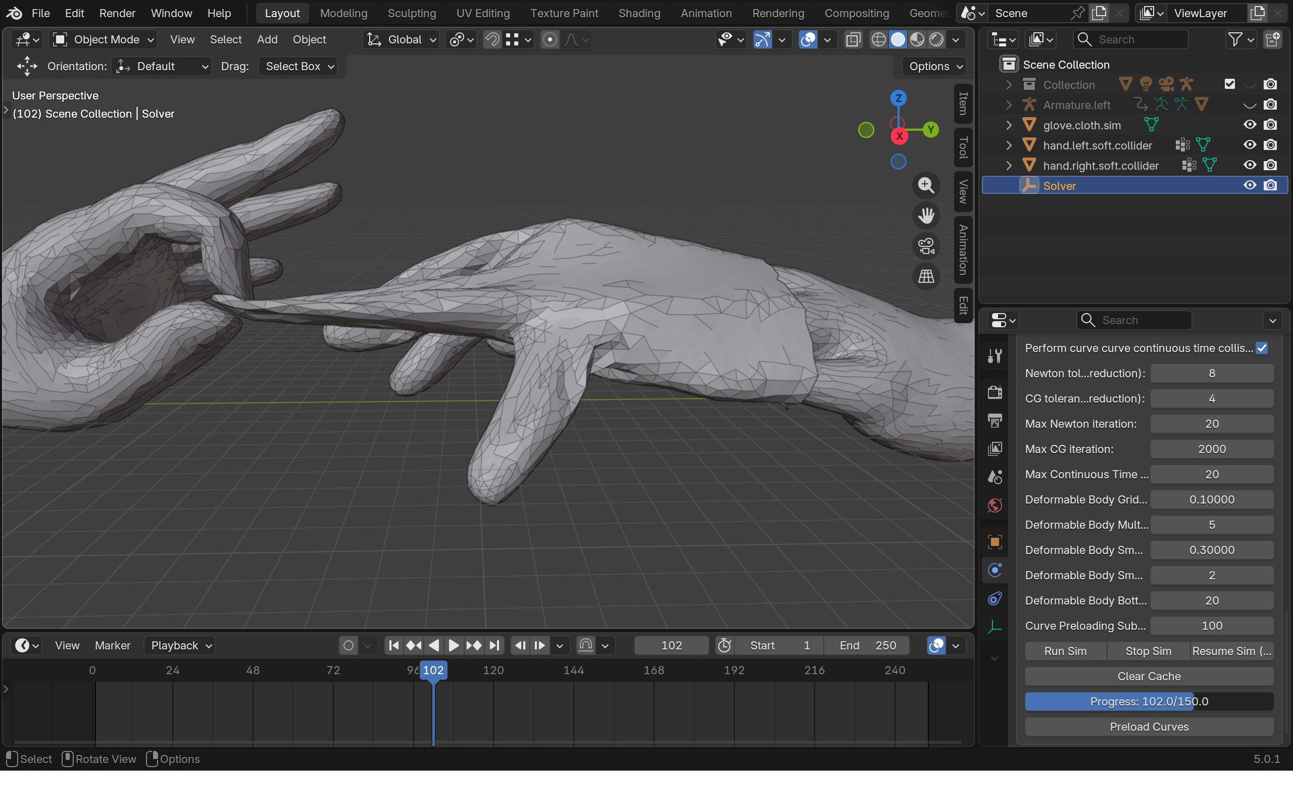 In the example file there is a premade glove.cloth.sim object as the glove mesh.