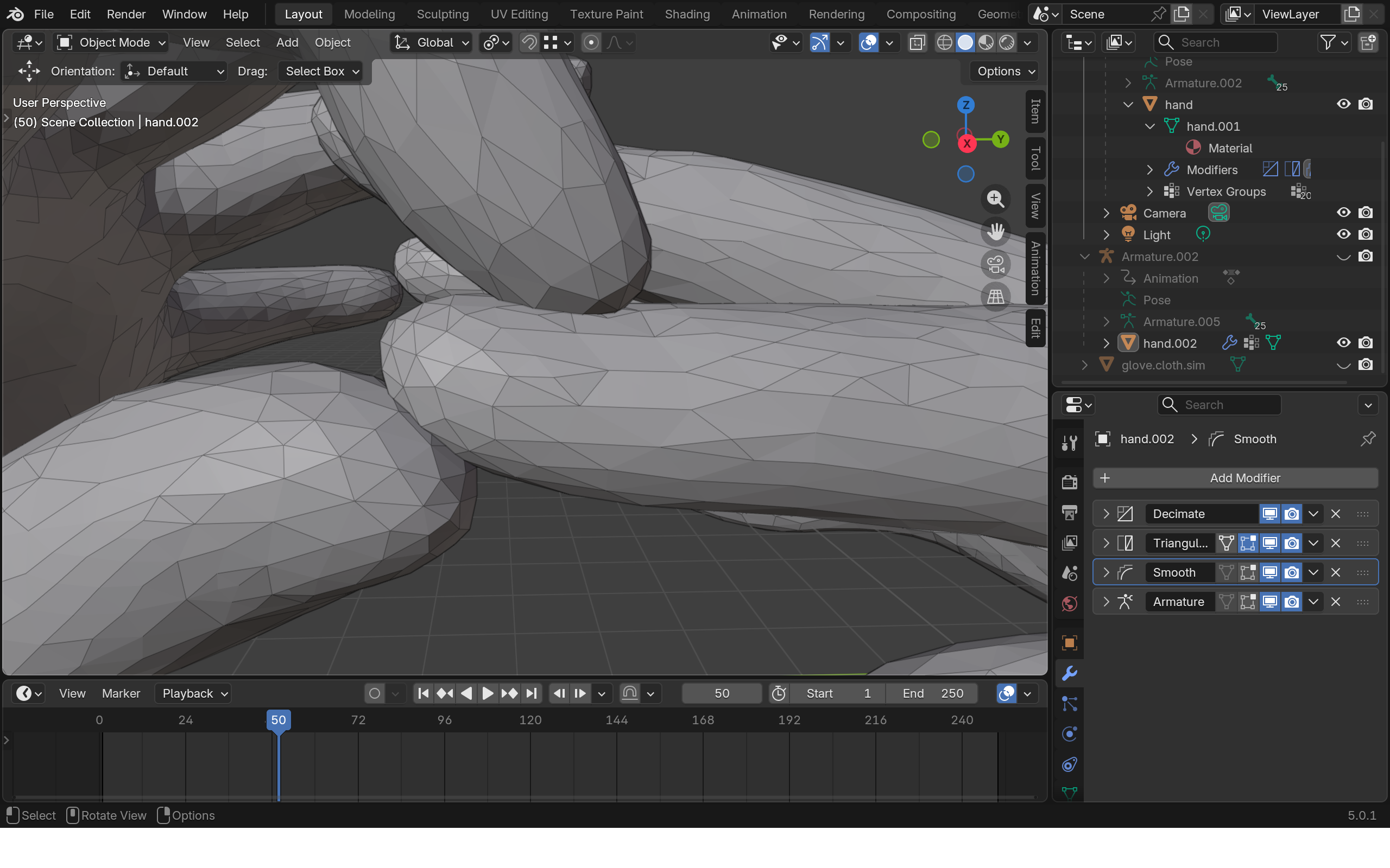 The starting file can be find here. Starting file has a simple animation of hand grabs and pulls the glove at one finger.