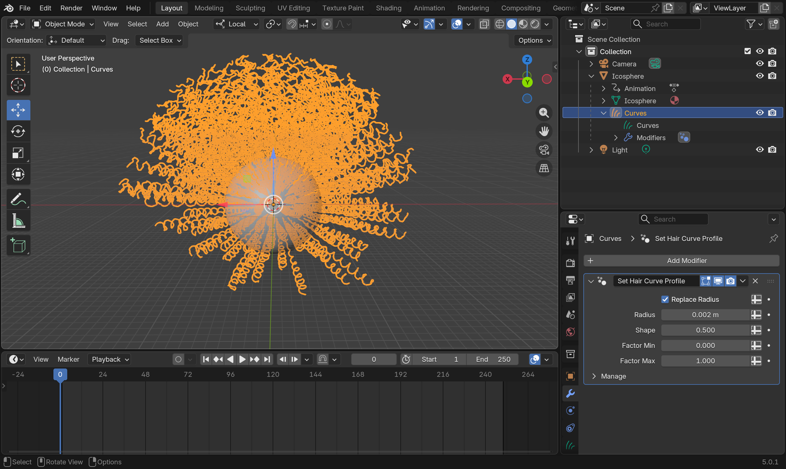 That's it! You can run the simulation from the Solver object and see the hair moves.